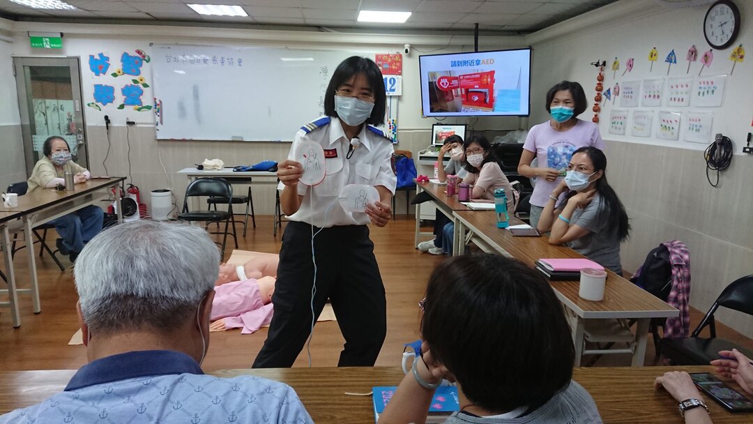 6/12,我們舉辦了一場名為「緊急狀況應變及急救演練」的講座,邀請了台北市消防局的救護員與消防員陳乃嘉老師來為協會的同仁與志工進行培訓。這場講座的主題包括了CPR原理、CPR的步驟與方法、異物哽塞排除法、AED使用方法(據點櫃台有一個)、止血及包紮,以及其他緊急狀況處理相關內容。這些內容都是針對據點中可能發生的情況來進行解說。
